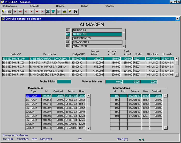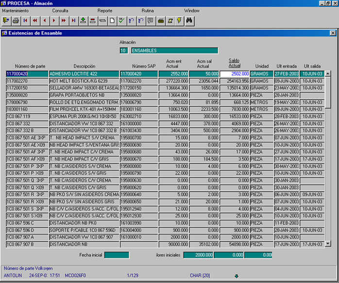Saber en tiempo real: existencias, ubicación, materiales en tránsito y fechas de ingreso de los materiales al almacén, constituye una buena base de un proceso productivo eficiente. Esto le permitirá planear y garantizar la ejecución de los programas de producción.